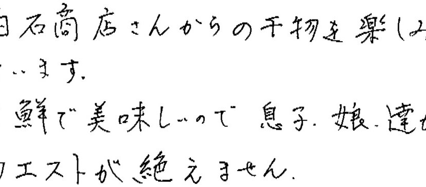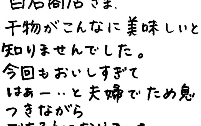 普段は干物はあまり食べない我が家ですが、白石商店さんの干物なら毎日でも食べたいです。