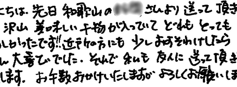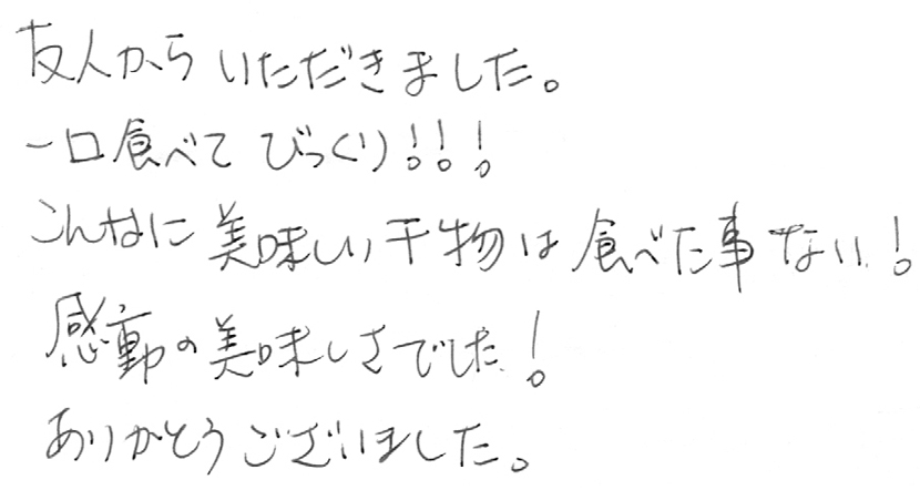 先日、ある方から、お宅様のお品を頂きまして、あまりの美味しさにびっくりしました。