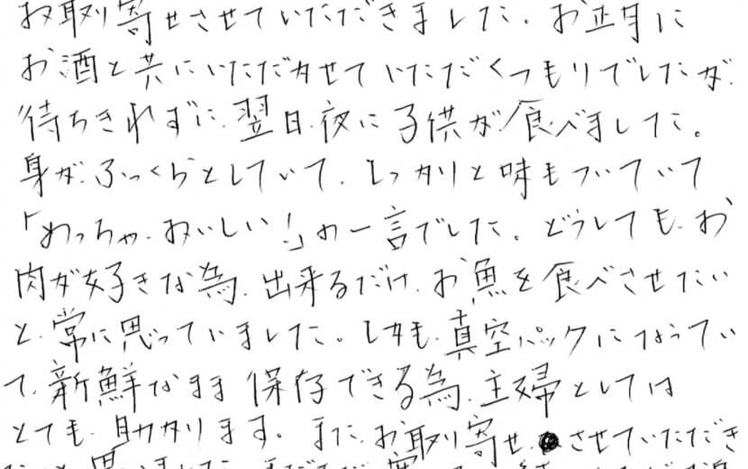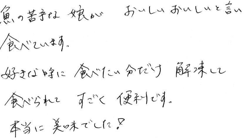 美味しい魚があるだけで食卓が一気に贅沢になりました。ほかの商品もぜひ試してみたいと思います!