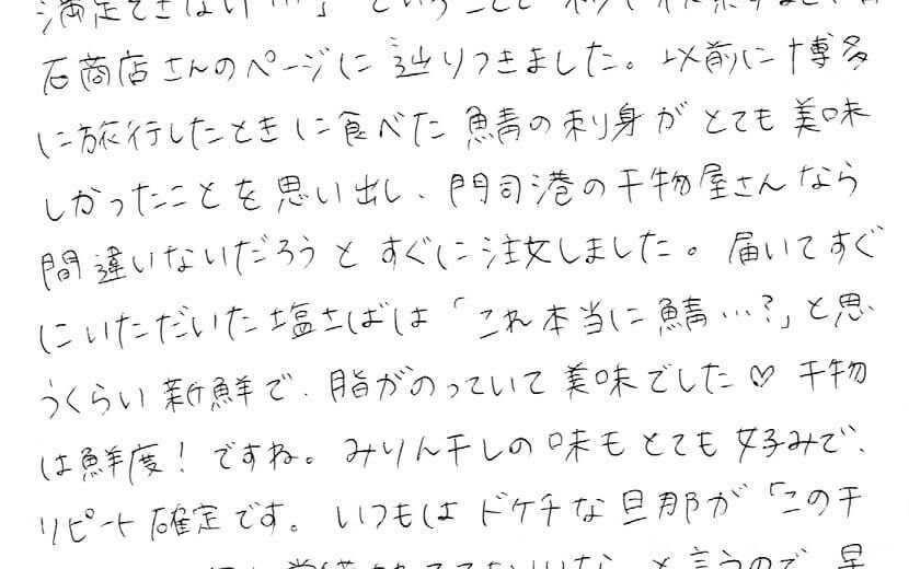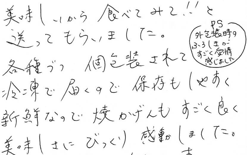 ネットで美味しい魚を探していた時に、御社を見つけました。