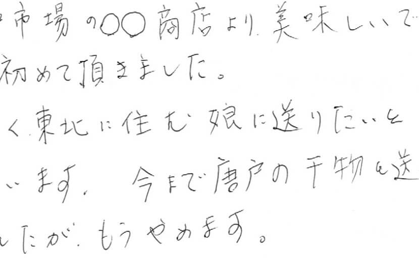 今まで唐戸の干物を送ってましたが、もうやめます。