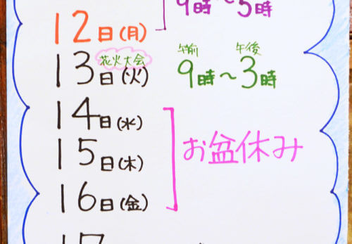 朝から「今日は開いていますか?」 と、確認の電話を何本かいただけるようになりました。 また、土曜日にも「明日は営業してますか?」と。 「9時から17時...