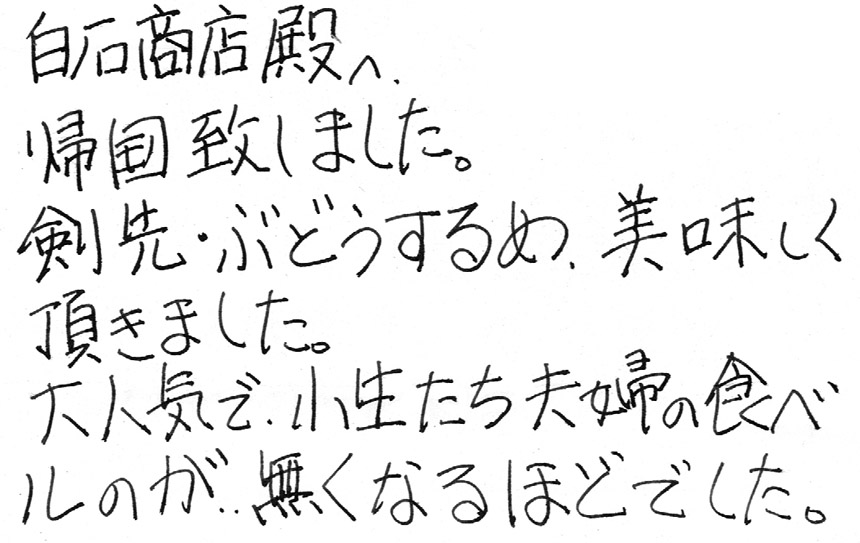 皆様に喜んでいただけてよかったです! 国産はやはり噛むほどに味が出て美味しいですよね。
