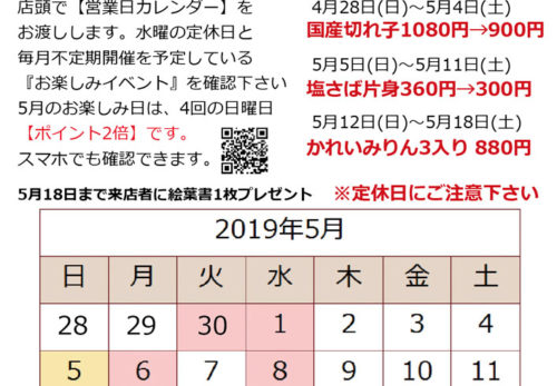2023年4月・5月営業日のご案内です