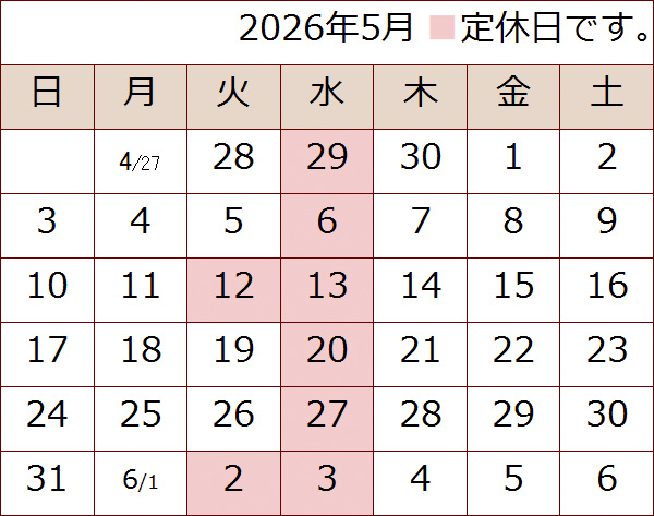 2026年4月営業日のご案内です