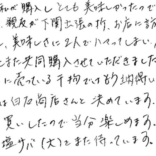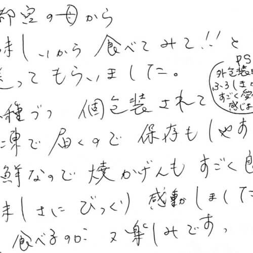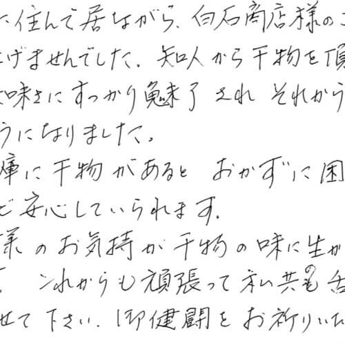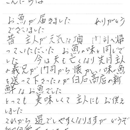 いつも美味しく頂いております。白石商店さんのお魚は、私を笑顔にしてくれます。
