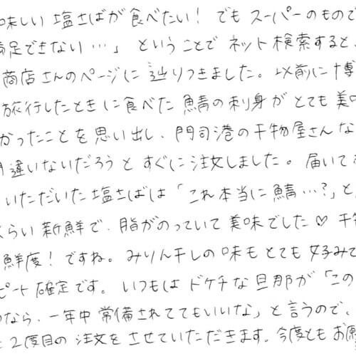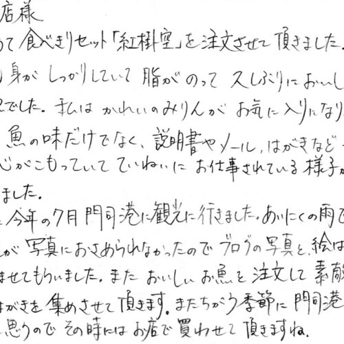 門司に帰った時はかならず母と貴店をおとずれ干物を買いました。