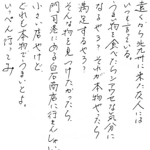 門司港に住んでいた頃から食べていて美味しかったから。
