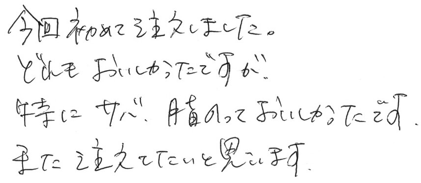 どれもおいしかったですが、特にサバ、脂のっておいしかったです。