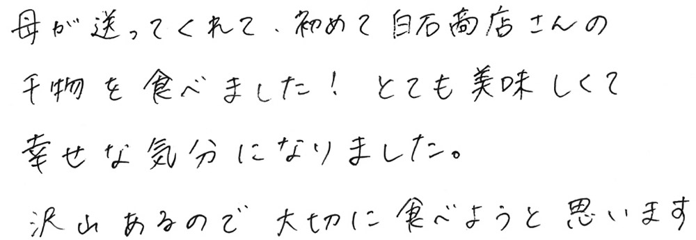母が送ってくれて、初めて白石商店さんの干物を食べました!とても美味しくて幸せな気分になりました