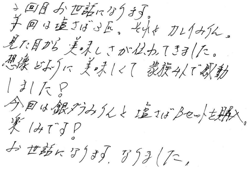 想像どおりに美味しくて 家族4人で感動しました!