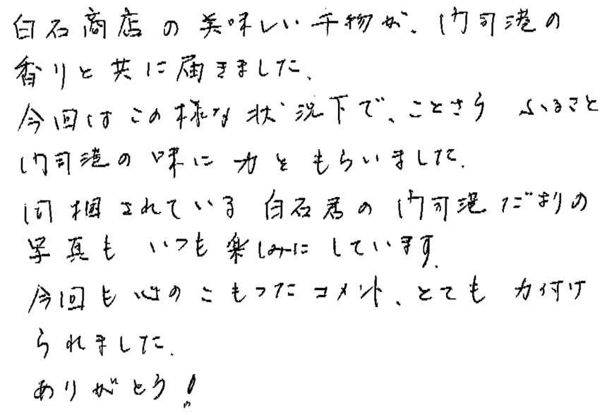 同梱されている白石君の門司港だよりの写真もいつも楽しみにしています。