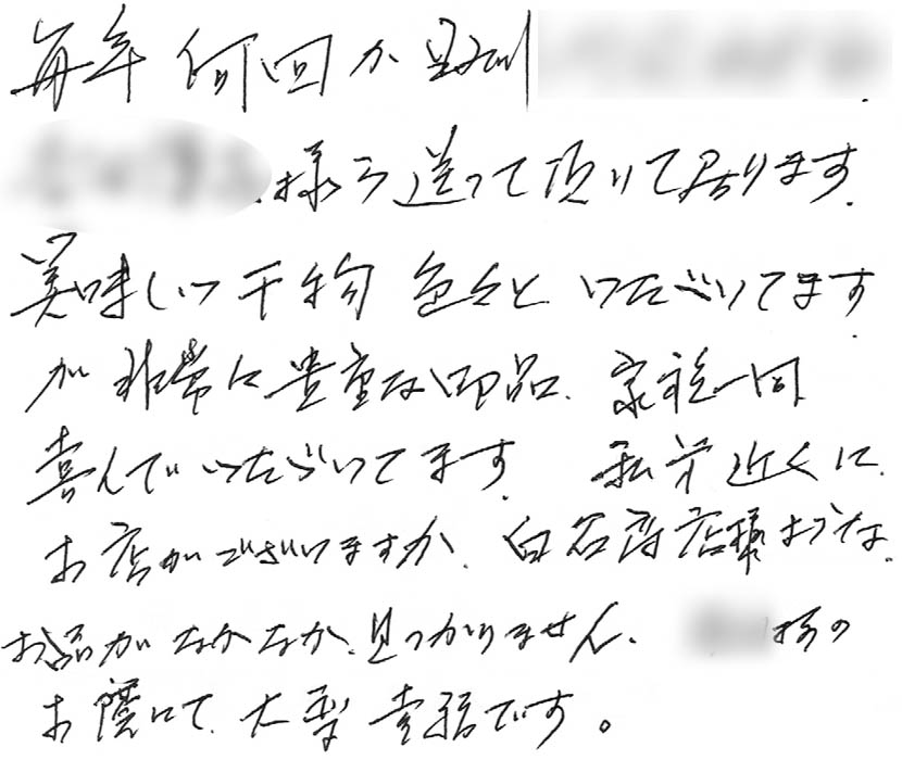 HOME BLOG お客様の声 近くにお店がございますが、白石商店様ようなお品がなかなか見つかりません。 近くにお店がございますが、白石商店様ようなお品がなかなか見つかりません。 2021.03.05お客様の声 この記事のタイトルとURLをコピーする お客様から届いた声 毎年何回か北九州 様から送って頂いて居ります。 美味しい干物 色々といただだいてますが非常に貴重な御品、家族一同 喜んでいただいてます。 私 近くにお店がございますが、白石商店様ようなお品がなかなか見つかりません。 様のお陰にて、大変幸福です。 匿名希望様 【店長より】 送り主様には大変お世話になっています。お客様におかれましても喜んでいただけているようで本当に嬉しいです。 見て買っていただくことはできない距離ですが、上質の海産物をいつでもお届けさせていただきますのでお気軽にご用命くださいませ。 どうぞ今後とも宜しくお願いいたします。嬉しいお便りありがとうございました。 Post この記事のタイトルとURLをコピーする お客様の声, 干物 干物, 門司港, 白石商店, お客様の声 絶妙な干し加減を、絶妙な焼き方で仕上げてください!『さより丸干し』、上品な旨味が詰まってます。 夕暮れの菜の花畑