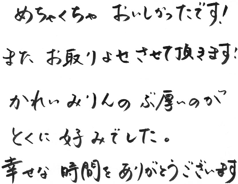 めちゃくちゃ おいしかったです! また お取りよせさせて頂きます!