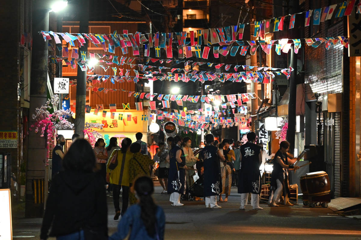 祭りの夜に、栄町界隈から老松公園まで歩いてきました。