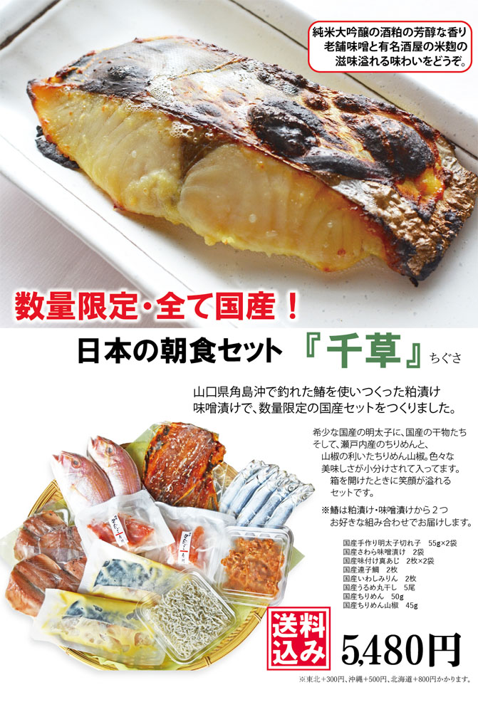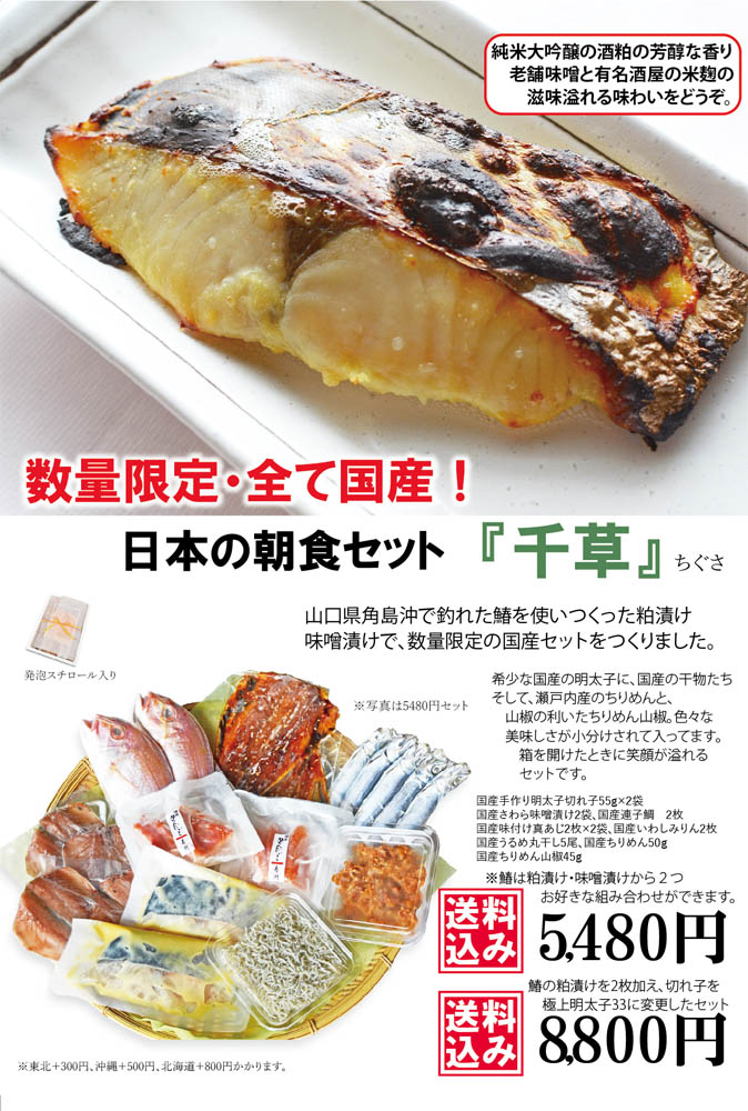 HOME BLOG 商品情報 国産セット『千種』ちぐさ 国産セット『千種』ちぐさ 2019.06.15商品情報 この記事のタイトルとURLをコピーする 山口県角島沖で釣り上げられた鰆(さわら)を使った、味噌漬け・麹漬けが入荷します。 そこで、【数量限定】白石商店にしかできない組み合わせの国産海産物セット『千種』をつくりました。 単品でのお求めも可能です。送料込セットに組み合わせて、オリジナルセットもお作りします。 詳しくはお気軽にお尋ね下さい! HPからの注文できます! 国産セット『千種』はこちら Post この記事のタイトルとURLをコピーする 商品情報 干物, 門司港, 国産明太子, 国産, 贈答セット, 白石商店, 数量限定, お中元 関門橋もいい仕事してます 日祭日のドライブ帰りに