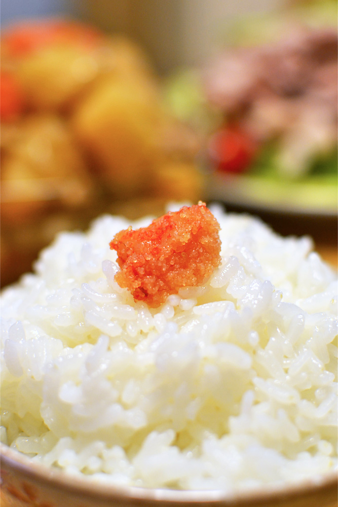ちょっと試食。 ご飯大好きなので、あんまり大きい明太子をのせちゃうとそれだけでお茶碗一杯なくなってしまうので、要注意です笑。