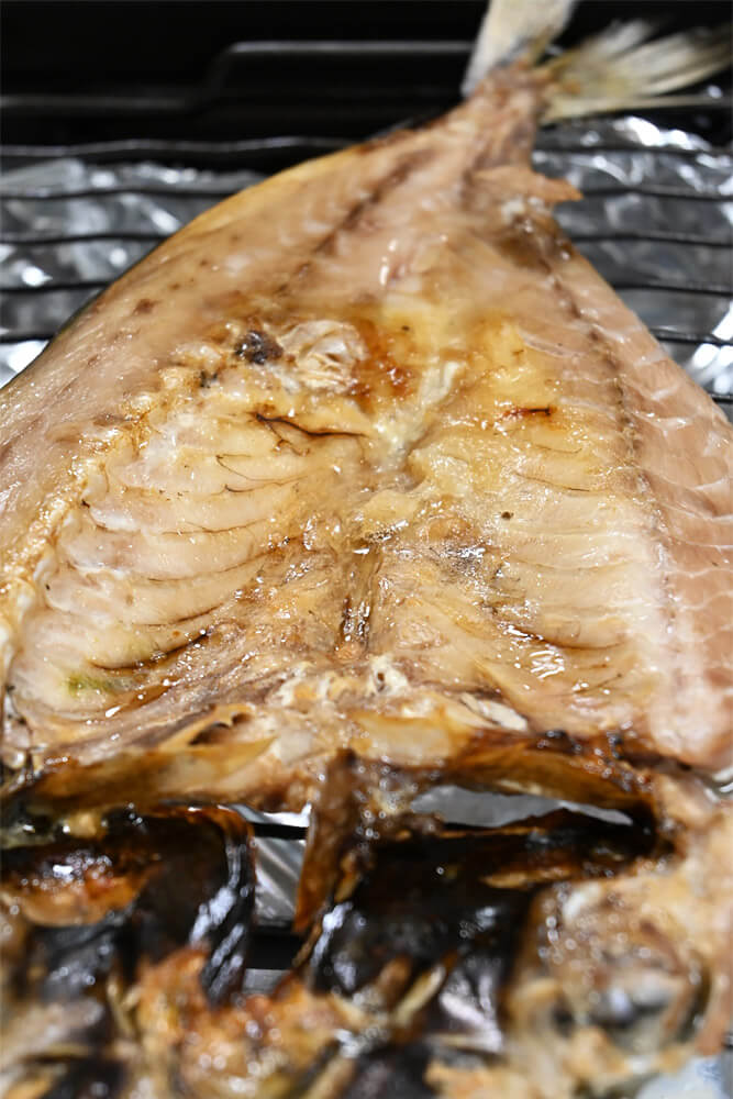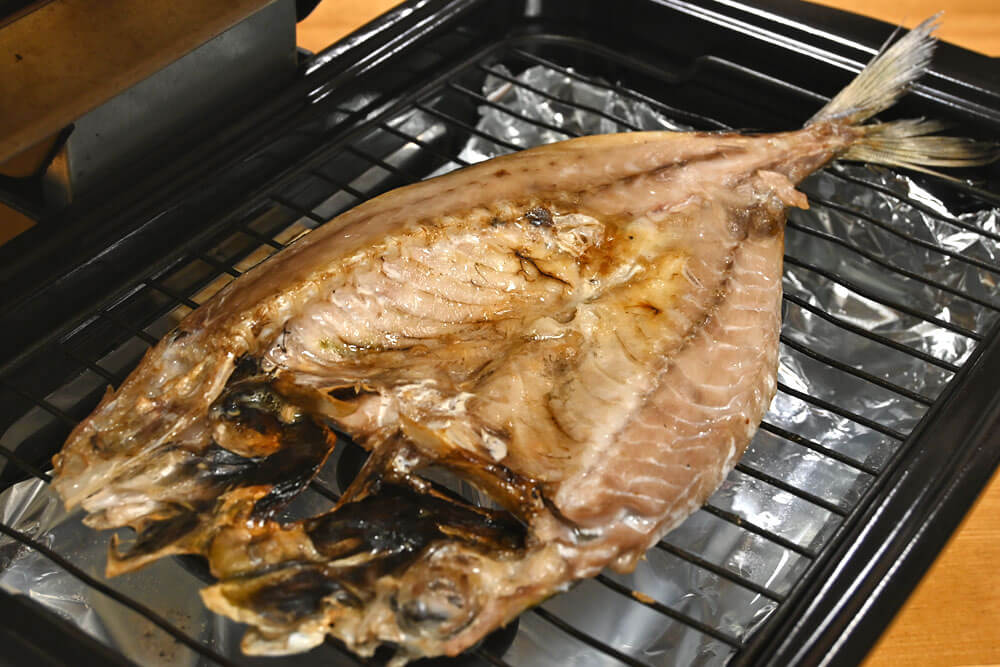 HOME BLOG 食べてみた この鮮度のいい脂のり、旨味と程よい塩気!特大あじを食べてみた。 この鮮度のいい脂のり、旨味と程よい塩気!特大あじを食べてみた。 2023.05.05食べてみた この記事のタイトルとURLをコピーする 「今晩、何を焼こうかな~」ってなったとき定番で候補に挙がるのは 『塩サバ』・『かれいみりん』・『特大あじみりん』等々と 『特大あじ開き』 今回は『特大あじ開き』焼いてみました! もう慣れた手順で【卓上魚焼きグリル】を後片付けが簡単になるように準備します。 フライパンで干物を焼く方も多くいると思いますが、これくらい肉厚になると蓋をして蒸し焼きにしないと中まで火が通りにくいと思います。 後片付けはフライパンを洗うだけ!と簡単なのですが、パリッと食感が残念な感じで・・。ぜひいつかは同じ干物を魚焼きグリルで試してみてくださいね。 次回からどちらで焼くか悩みますから笑。 では、中心まで常温に解凍しておいて、弱火で表面がいい焼き色になってフツフツ脂が身から出てきたら、OK!身が厚く脂ののってる干物なので、ちょっと焼き過ぎても大丈夫! 美味しい焼き目をつけましょう。 電源を切って、少しの間ふたをしたまま余熱で中まで火を通して出来上がりです。 大きく身がポロっととれて、ジューシーな脂と程よい塩気で安定の美味しさです。 うん、間違いなし笑。 大きな干物で、骨のある場所を覚えて上手な干物の食べ方の練習をしてみてください。 干物の上手な身の取り方・食べ方はこちらから Post この記事のタイトルとURLをコピーする 食べてみた 干物, 門司港, 白石商店, 特大あじ 先日、ある方から、お宅様のお品を頂きまして、あまりの美味しさにびっくりしました。 旨い塩サバは大きく、とにかく脂がのっていて美味しいです。ご飯のお供に、お酒のおつまみに最適だと思います。
