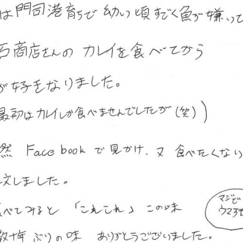 門司に帰った時はかならず母と貴店をおとずれ干物を買いました。