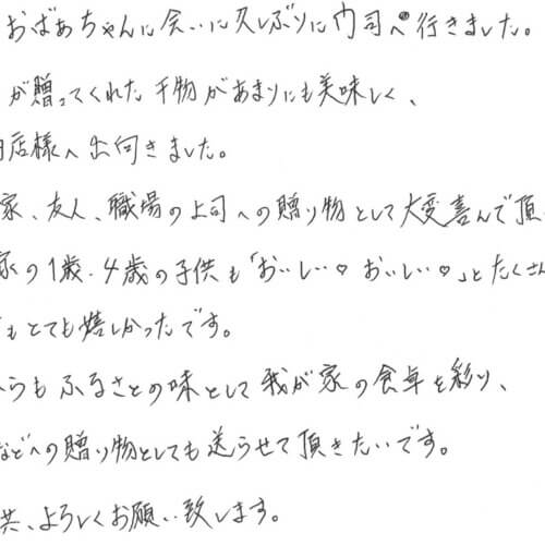 いつもとても早い対応と届いた知合い皆がとても喜んでくれています。