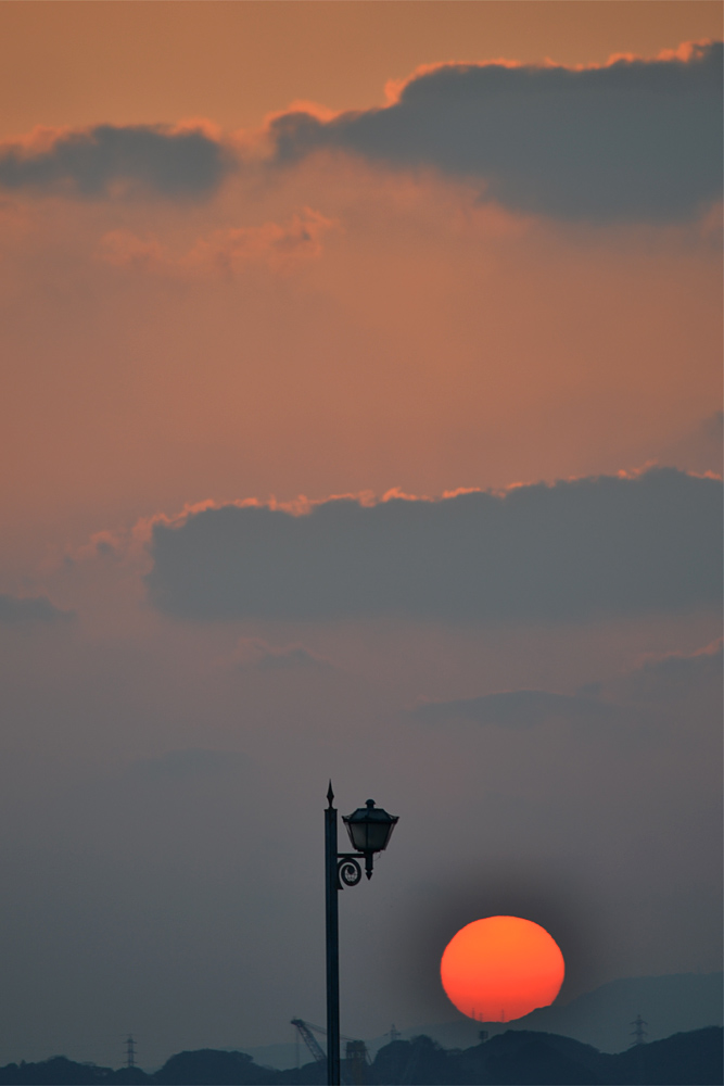 ちょうど、定休日に車で門司港近辺を移動中にこの夕日に出会い、場所を少しずつ変えて全部で6枚撮りました。
