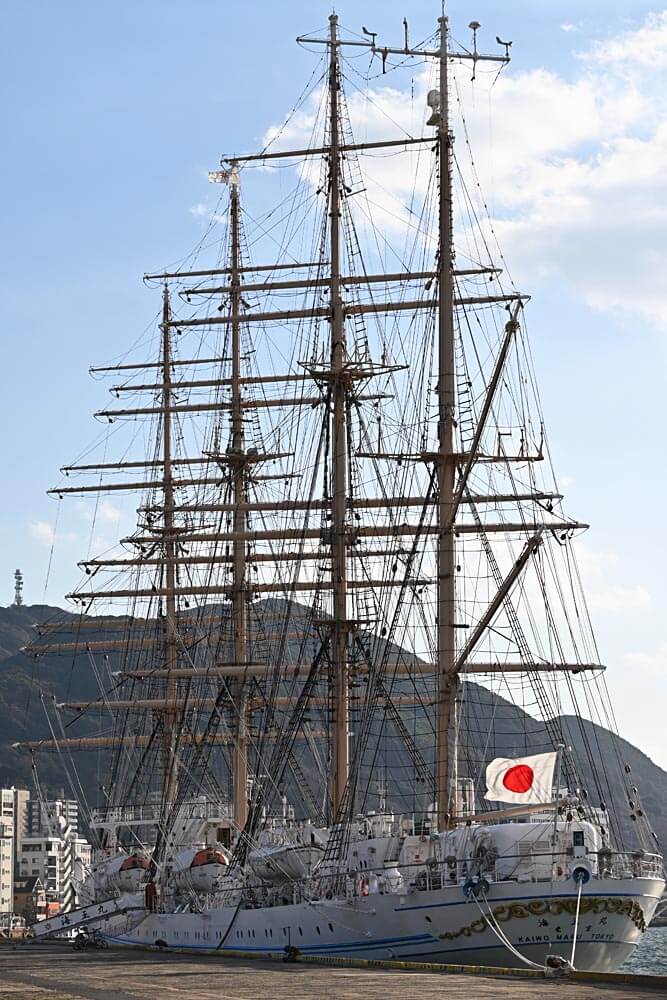 HOME BLOG 門司港の夕景・景色 門司港に帆船『海王丸』が。その2 門司港に帆船『海王丸』が。その2 2023.03.13門司港の夕景・景色 この記事のタイトルとURLをコピーする その1の寄りの写真です。 帆船の象徴のマストは迫力あります。これに帆をはって海原を走る姿を見てみたい。 遠くからの撮影なので比べられませんが、門司港ホテルにも負けてないくらいの大きさ! これくらい寄っても、帆船の美しさが写真にも出ます。 海王丸は、この撮影の翌日に出航していきました。晴れた風の強い日に撮影できてよかった!また門司港に来てくださいね。 Post この記事のタイトルとURLをコピーする 門司港の夕景・景色 門司港, 海王丸 門司港に帆船『海王丸』が。 今回貴店の鯛丸干しを味わい、当時の事を懐かしく思い出しました。