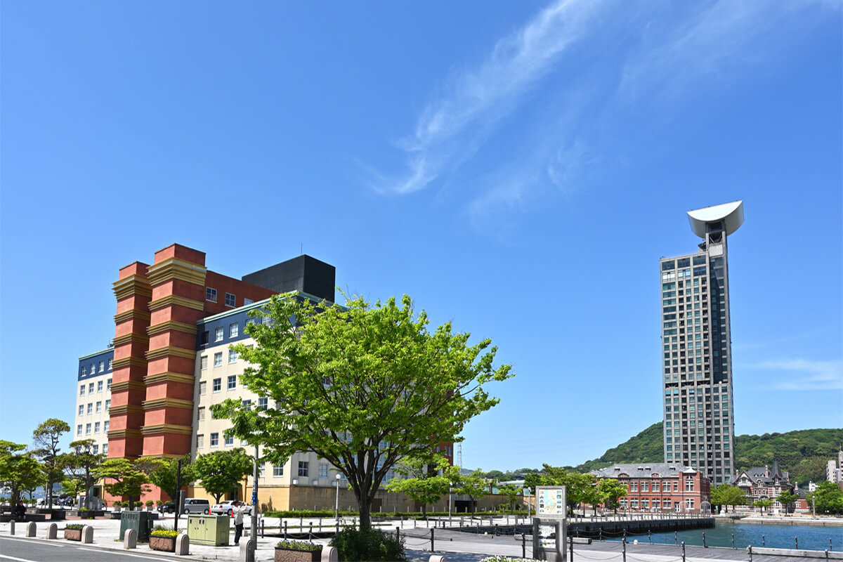 建物の隙間から海も見えて空も広くて、のどかでいい町です。